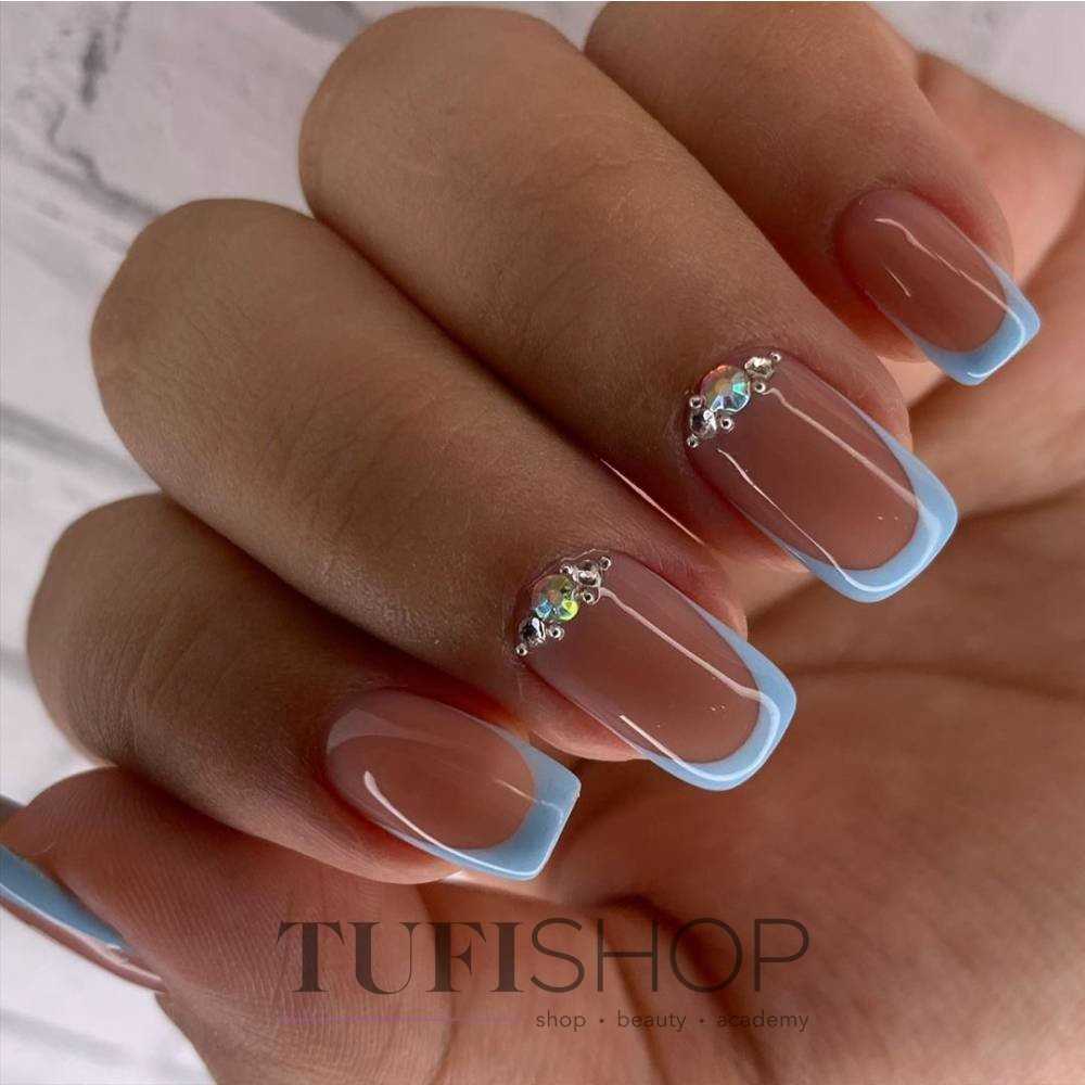 Синий нежный маникюр станет стильным и элегантным аксессуаром для любого праздничного настроения.