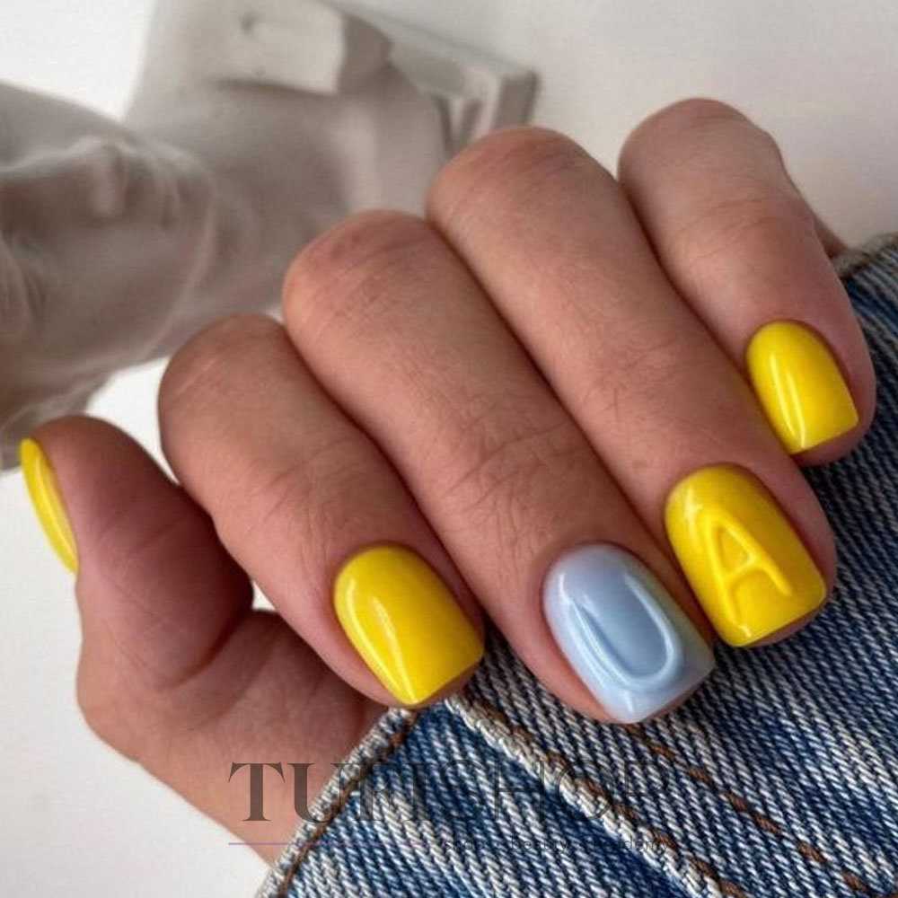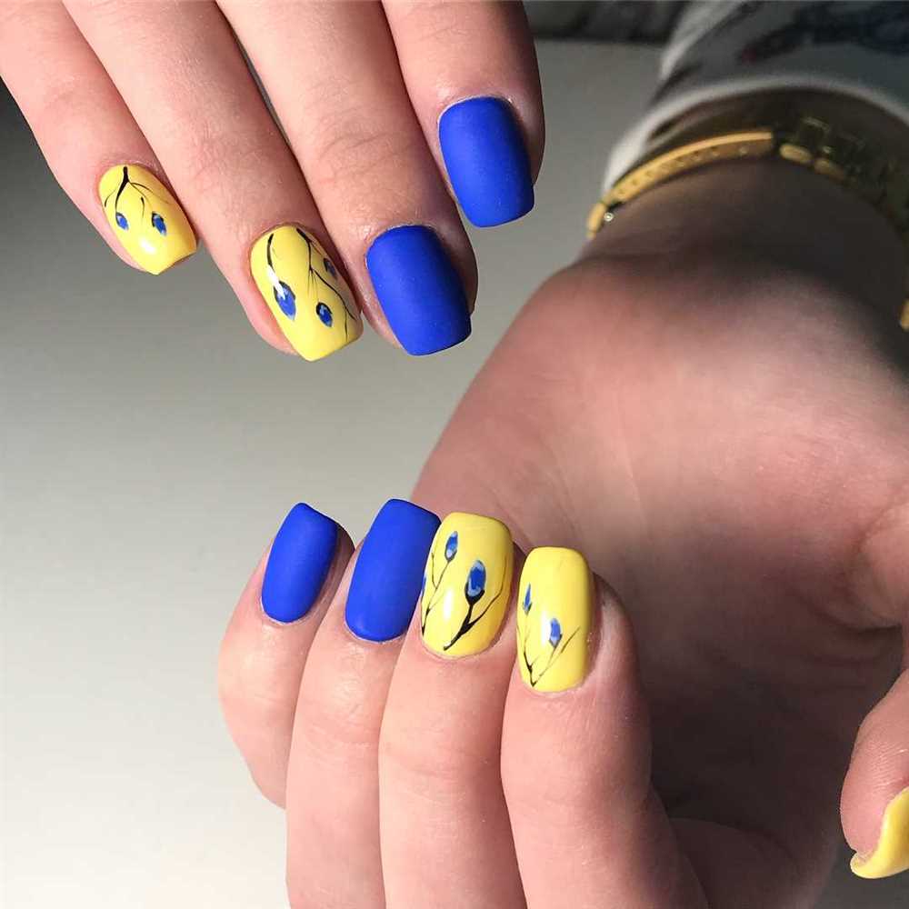 Маникюр в сине-желтой гамме является одним из самых популярных вариантов для создания стильного и оригинального